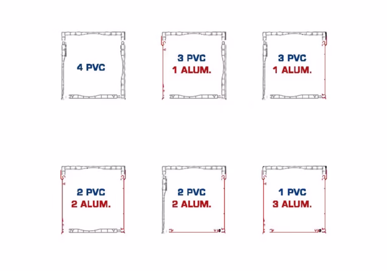 La tapa frontal siempre ira de Pvc para ofrecer rigidez, pero esta tapa está oculta a la vista gracias a unas pestañas que tiene las tapas de aluminio., que cubren la parte superior del sombrero