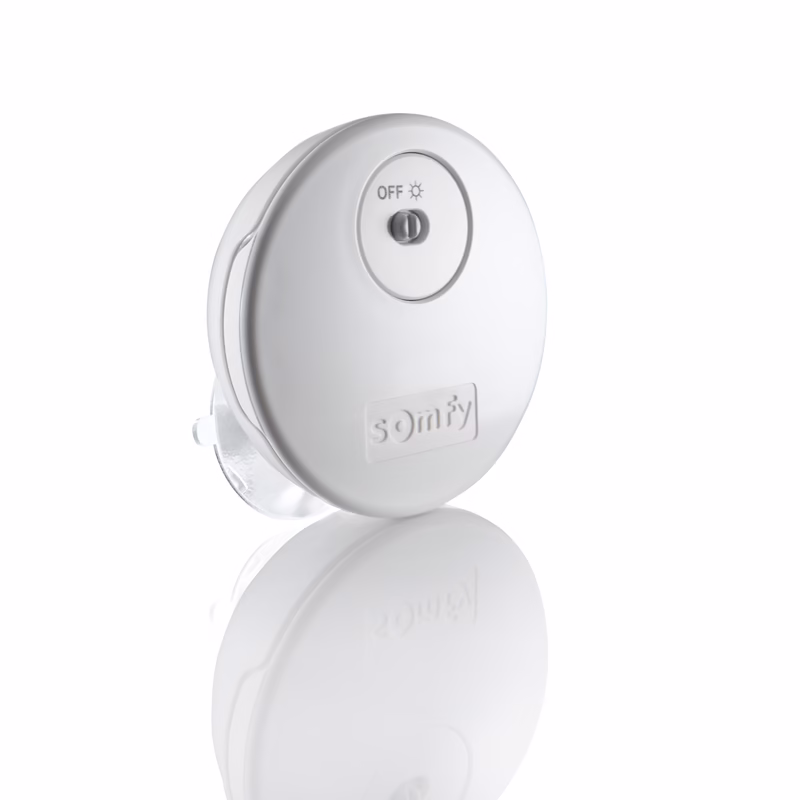 El sensor permite de medir la luminosidad exterior. Junto con TaHoma de Somfy, enviará órdenes a otros equipos en tu Smart Home (persianas, persianas, luces).